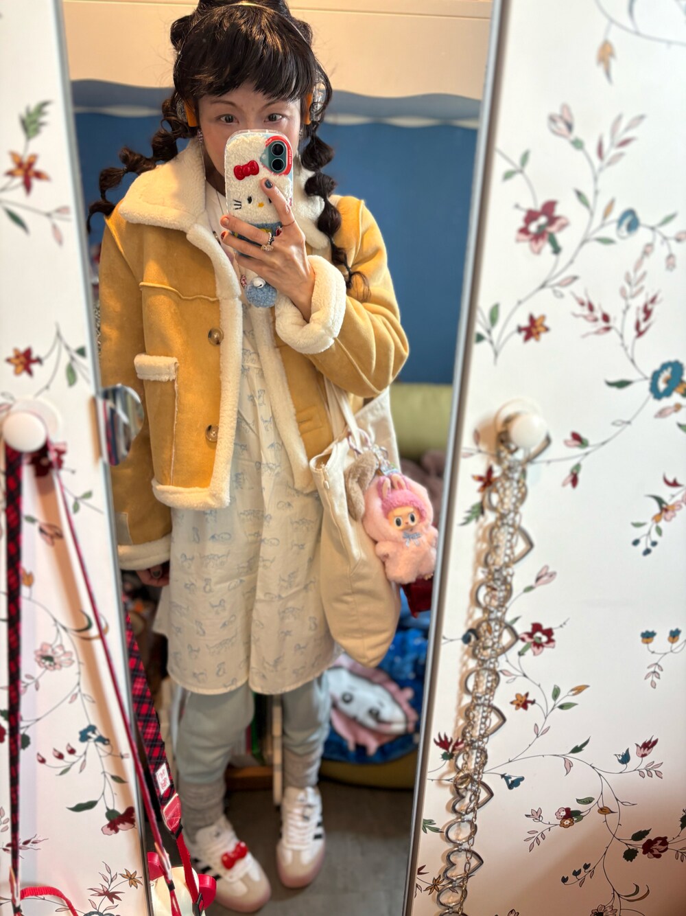 11 January 2025 Saturday 🌤️ · ❤️💛💚💙💜❤️💛💚💙💜❤️💛💚💙💜 #Today outfit 🍄Feckleseoul雙面短款夾克外套 🍄簡約英文字母圓領短身Tee 🍄淺藍色運動褲@Stylenanda 🍄貓咪pattern白色吊帶op 🍄氣球耳環@apm monaco 🍄心型項錬@apm monaco 🍄復古心形相片吊墜/桃紅色貓貓水玉項鍊 🍄Rastar小熊手提包 🍄Hello Kitty厚底簡約黑白鞋 ❤️💛💚💙💜❤️💛💚💙💜❤️💛💚💙💜