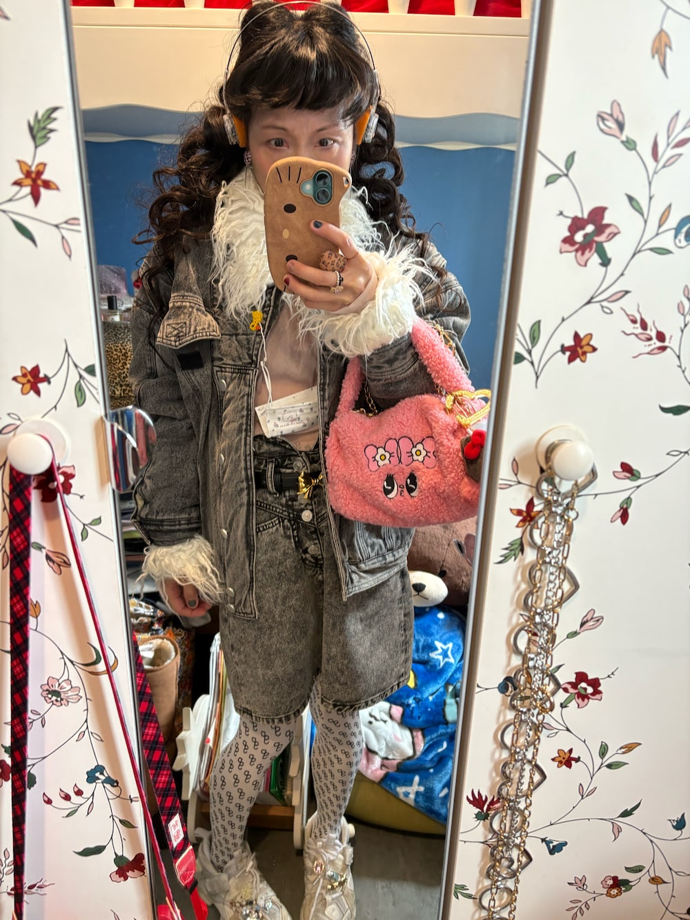 23 February 2025 Sunday ⛅️ · ❤️💛💚💙💜❤️💛💚💙💜❤️💛💚💙💜 #Today outfit 🍄灰色牛仔馬甲棉衣 🍄藕粉色樽領打底衫@Lowrys Farm 🍄白色毛毛領灰色長袖拉鍊針織外套 🍄黑色石磨高腰牛仔裙@Zara 🍄氣球耳環@apm monaco 🍄心型項錬@apm monaco 🍄復古心形吊墜/桃紅色貓貓水玉項鍊 🍄繡花粉紅色毛絨兔子手挽袋 🍄白色Reebok波鞋 ❤️💛💚💙💜❤️💛💚💙💜❤️💛💚💙💜