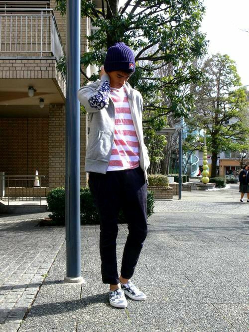 Ryo(BENCH AT THE GREENE MEIJI PARK MAE)のニットキャップ/ビーニー「《BEN DAVIS》定番 cotton KNIT CAP/ベンデイビス コットンニットキャップ」を使ったコーディネート