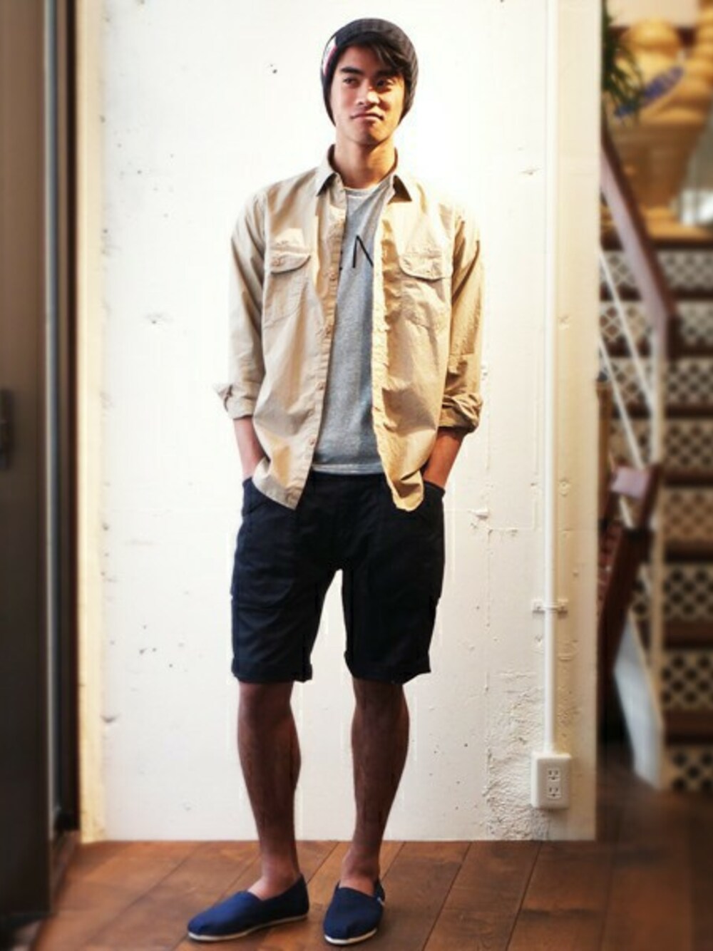 カーゴショーツとワークテイストのシャツを合わせる事でBEN DAVISらしいコーディネートに。こちらのシャツは軽くて肌触りの良い上質なコットンを使用していますので、春先や夏場の羽織り物としておススメです。