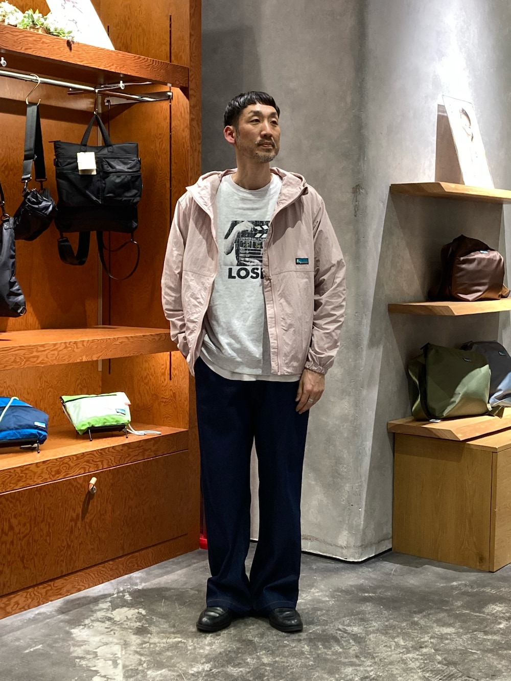 春カラーのシンプルコーデ。 甘めのカラーなので他はシックに まとめています。