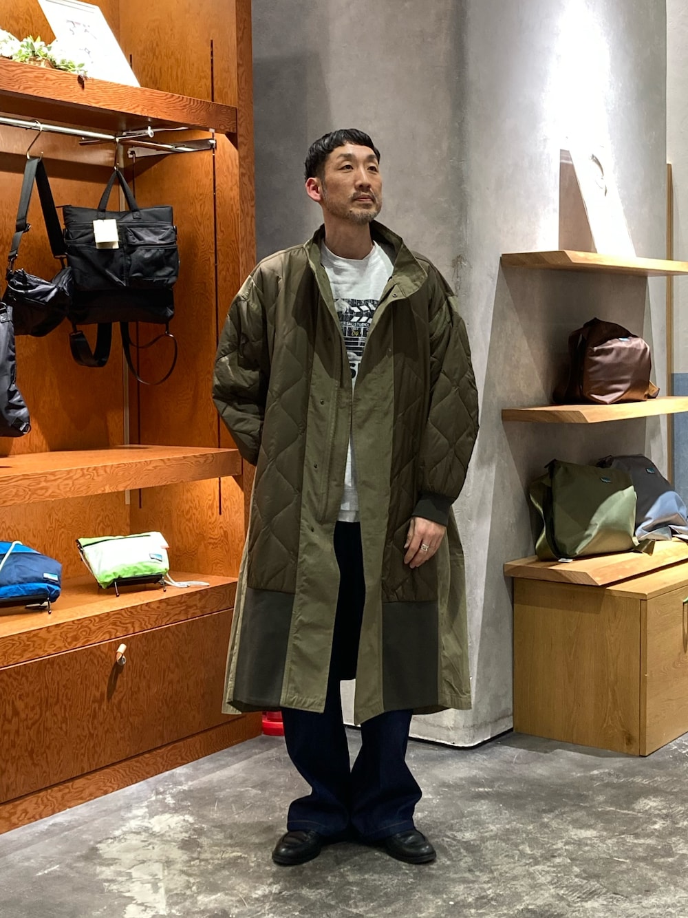 ミリタリーコートのシンプルコーデ アウターはユニセックスで着て いただけます。