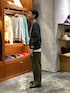 スウェットにカーキのパンツを合わせた カジュアルコーデ。
