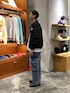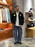 インパクトのあるアウターを デニムに合わせたカジュアルコーデ ユニセックスアイテムになります。
