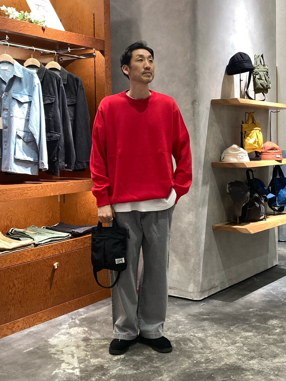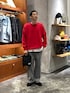 シンプルなスタイリング 赤がアクセントになります。