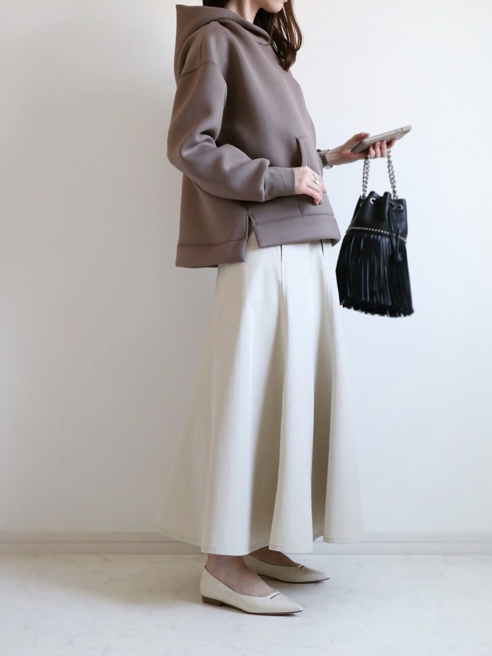 パーカーなら断然ボンディング素材ꜝ 着たときの軽さ、体のラインを拾わない美ライン、フードの立ちで小顔効果 どれをとっても最高♡ rectangleのはたっぷりサイズが可愛い◡̈