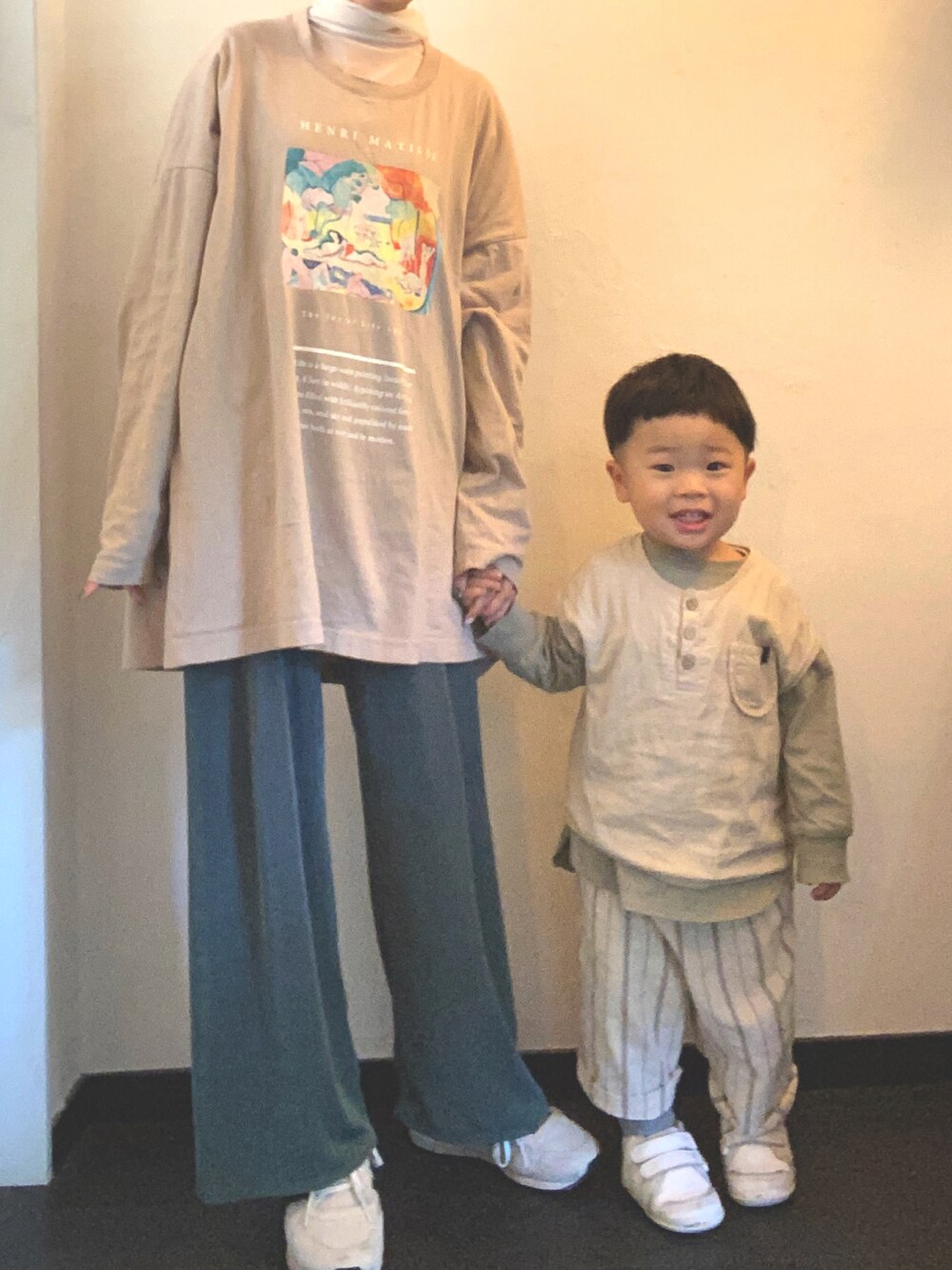 グリーンとベージュとホワイトのコーデ🟢⚪️🟤
