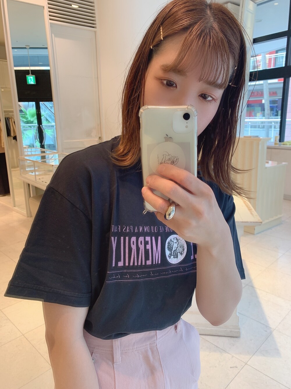 ゆったりTシャツにスカート合わせが、大人かわいいコーデ♡ Tシャツのロゴのピンクとスカートのピンクを合わせて統一してみました✨