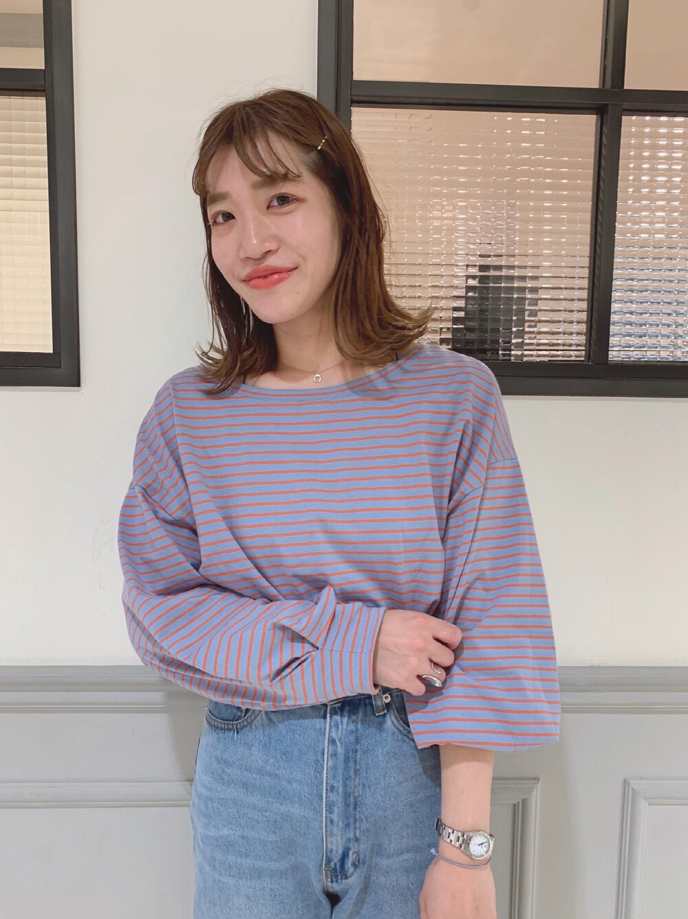 yoooko1206のTシャツ/カットソー「NEW ボーダーボリュームロングTシャツ」を使ったコーディネート