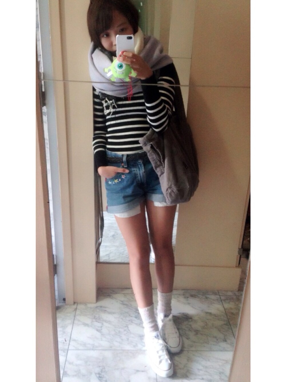 マフラー jeanasis トップス GAP ソックス 靴下屋 お花の刺繍入りのショーパンがお気に入りです◎