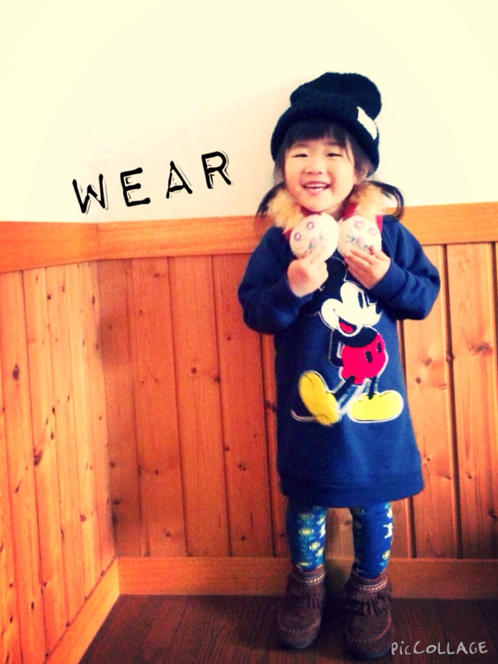 お気に入りの耳あてを出してきた! まだちょっとはやいかな☻ でもふわふわで気持ちいい☻
