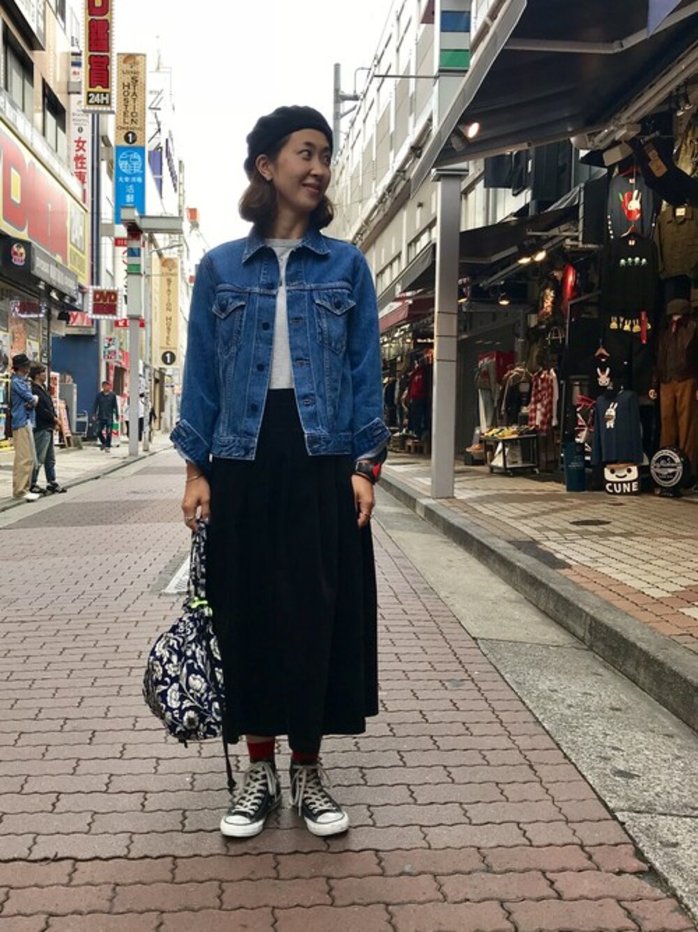 グランマスカートファンのみなさま! 今季も新作の生地でスカートが入荷しました! ボヘのGジャンとコーディネート。