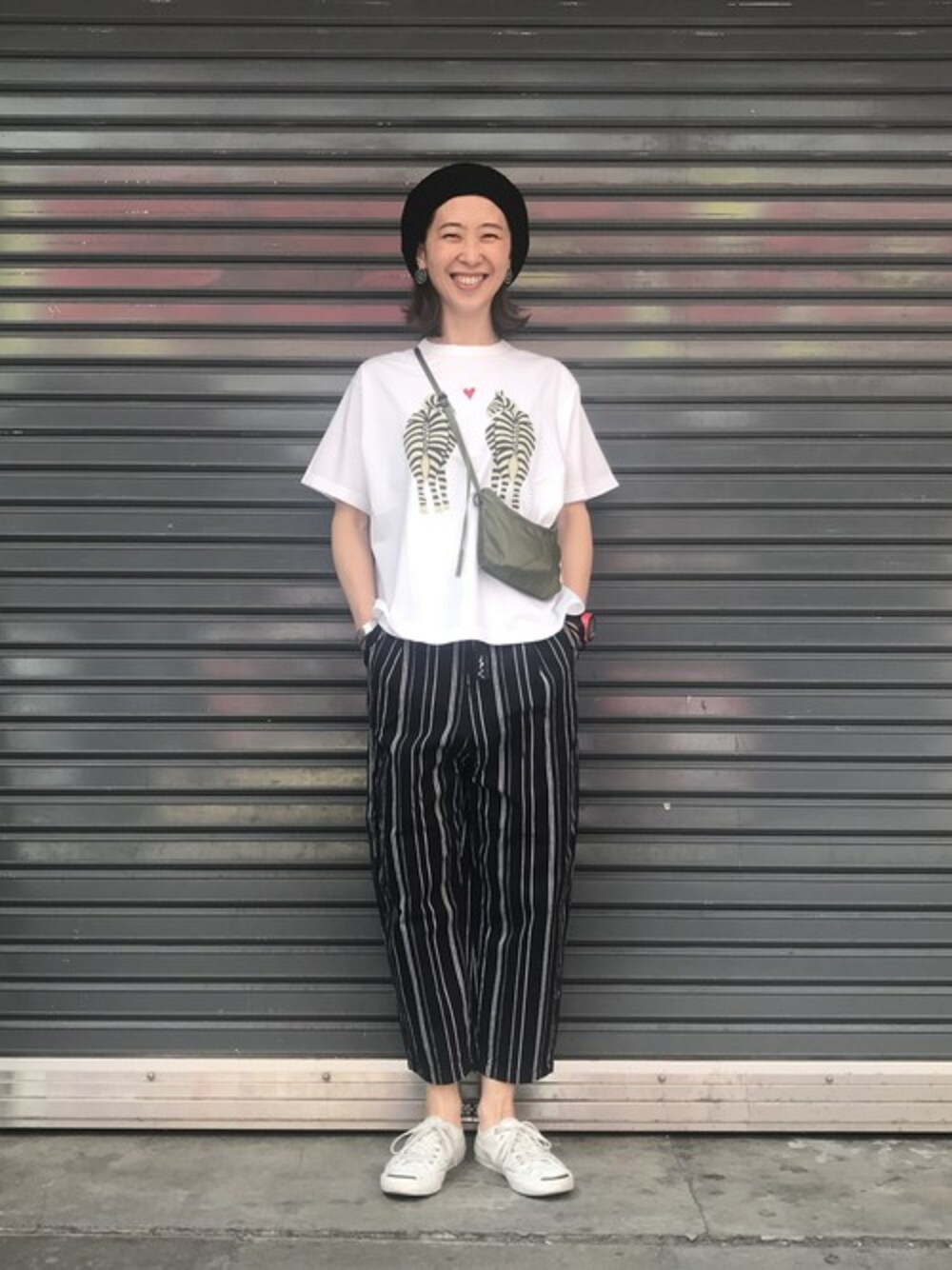 ストライプのパンツでカジュアルになりすぎないように(^^) 暑くなってきたので、リネン素材のパンツが快適ですね!
