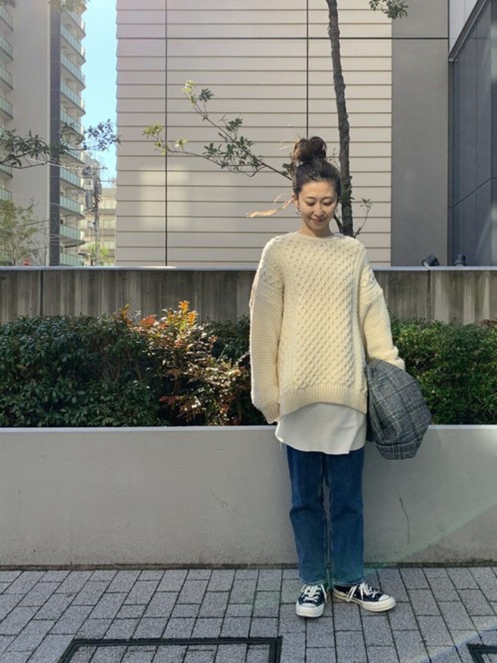 マナスタのサーマルはお尻が隠れるくらいの絶妙な丈感です! こんな風に重ね着するのにピッタリ!