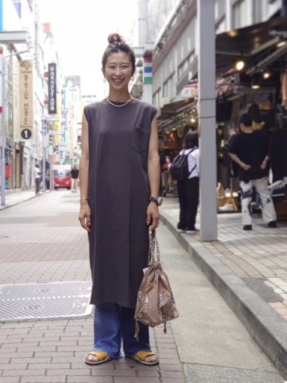 YOSHIHARUのワンピース「GOODWEAR/グッドウエア SLEEVELESS POKET ONEPIECE LONG スリーブレスポケットロングワンピース」を使ったコーディネート