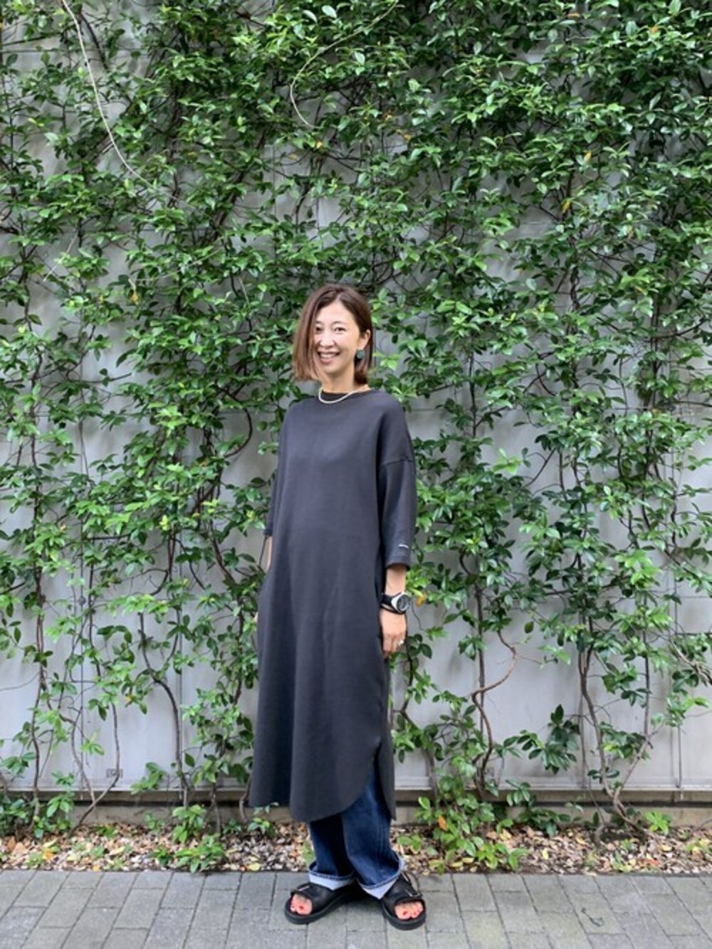 マナスタのかのこ生地のワンピースでコーディネート 形がキレイなのでさらっと一枚で(^^) 着心地も抜群です!!!