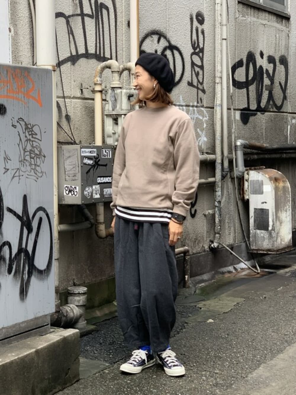 manastashのスウェットでcoordinate!!! 柔らかい色を選んで、女性がきる可愛いメンズライクに^_^