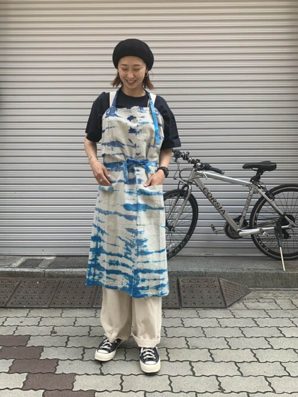 上野、渋谷店限定アイテム! タイダイ柄のエプロンでコーディネートしました。 おうちで使うのはもちろん、キャンプの時などのワークエプロンとしても使えます!
