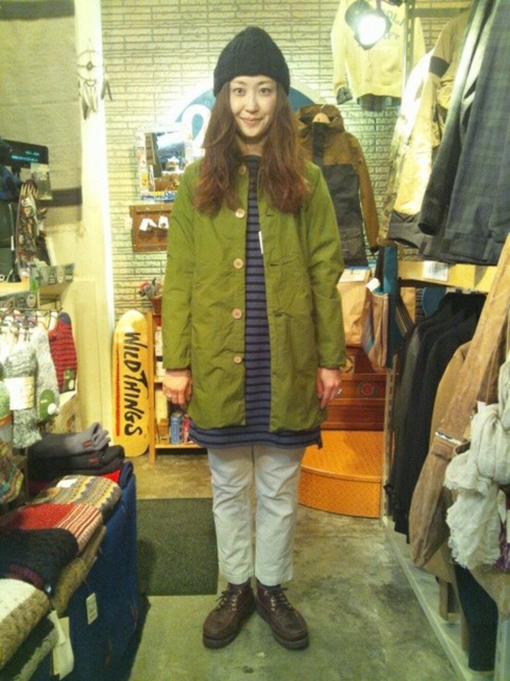 まだまだ寒いですが…新作のステンカラーコートを着ちゃいました!きれいなグリーンがいいです!