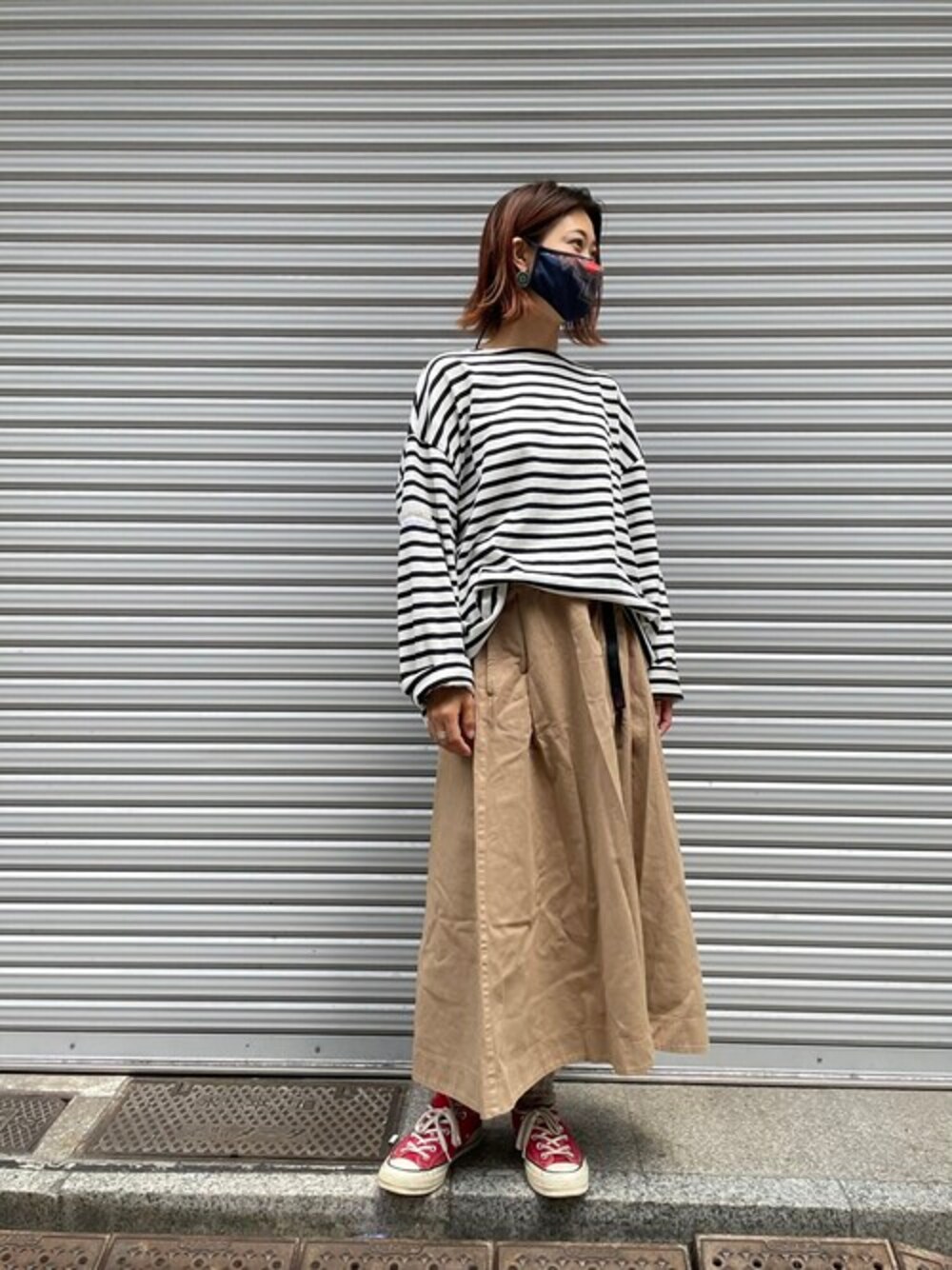 メンズアイテムのボーダートップスでコーディネート! 女性にもおすすめのアイテムです(^^)