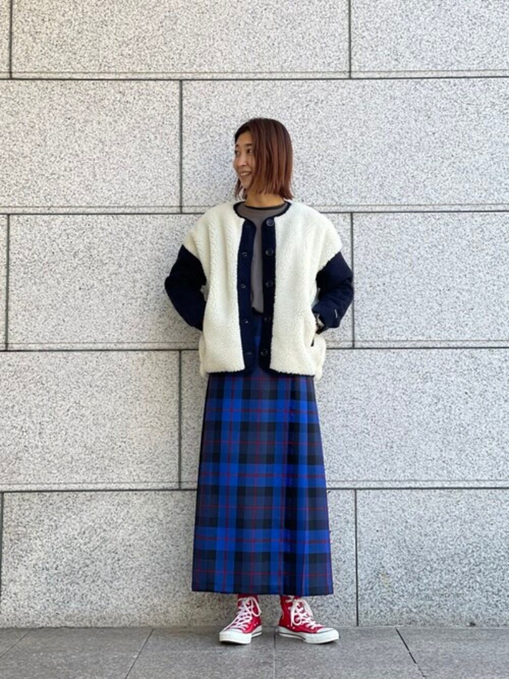 メンズライクな着こなしも、オニールのスカートでグッと女性らしく!