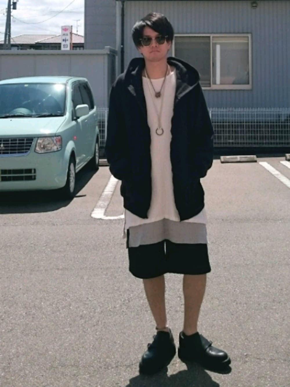 こんにちは。 アンユーのパーカーやっぱいいすわ。 ロング丈のトップスにショートパンツのバランス結構好き。 涼しいですしね。 休日楽しみましょう。 では。