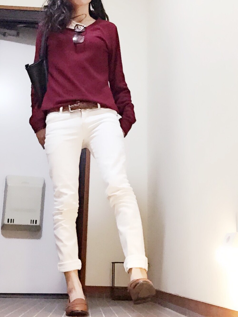 前のコーデ( ˙-˙ ) 秋くらいやったから、ボルドー笑 こーゆう感じすき♡