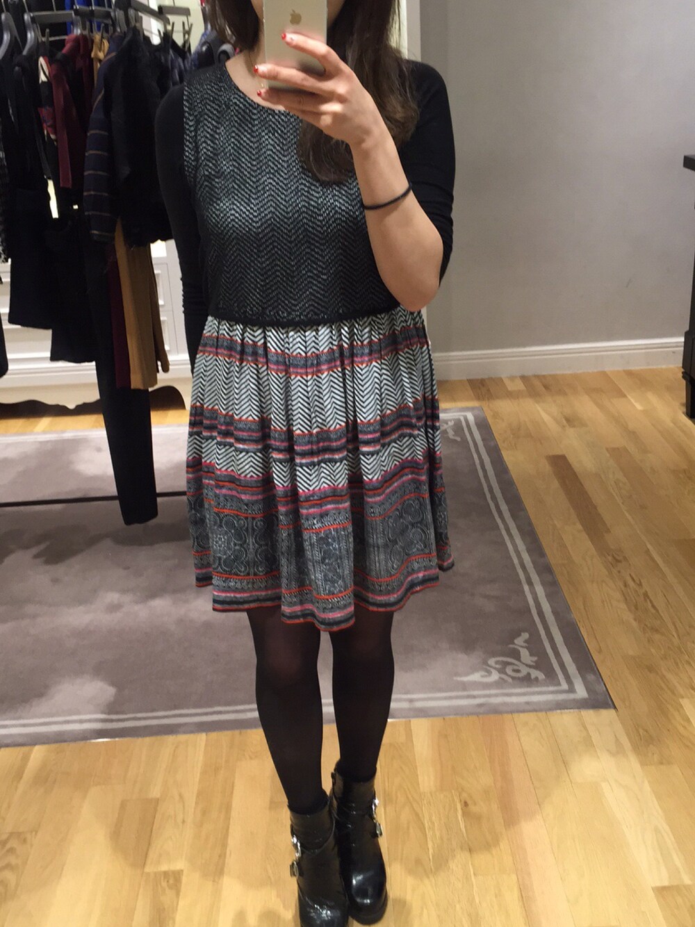 ノースリーブワンビに黒のインナーで重ね着しました。
