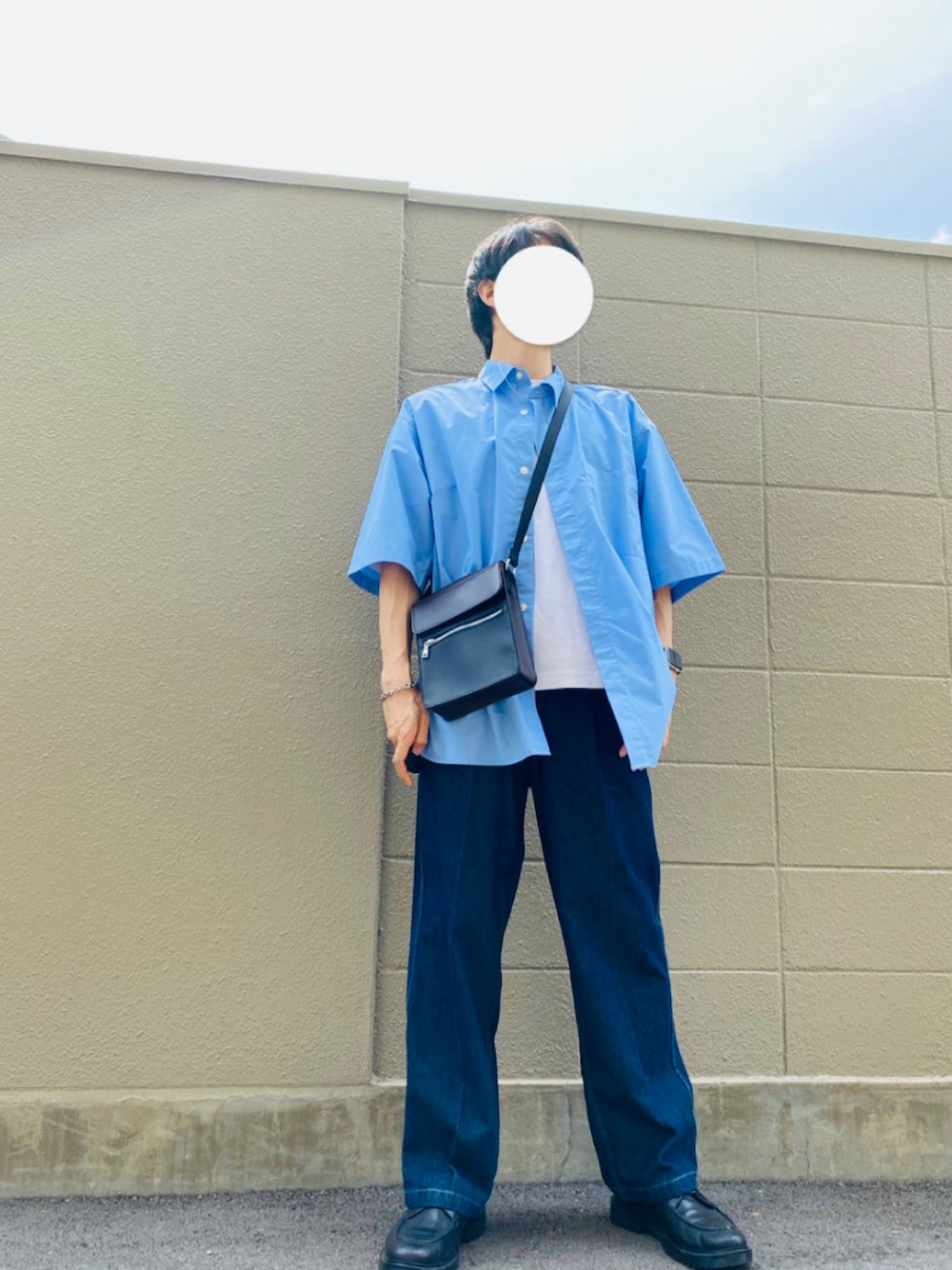 ブルーシャツ×ブルーデニムのthe夏コーデ✌🏻 夏にしか着られない色の組み合わせは今のうちにやっておきたかったので挑戦しました!