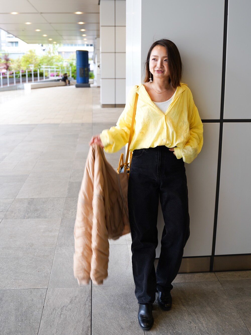 全身SeaRoomlynn です🌱🌼 春っぽいイエローのシャツと相性のいいブラックデニム🌝