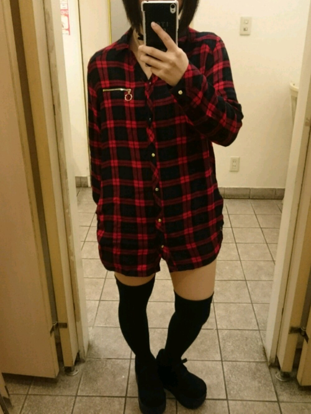 お気に入りの赤チェックの シャツワンピ👗 NANAっぽいコーデが好き👌💕