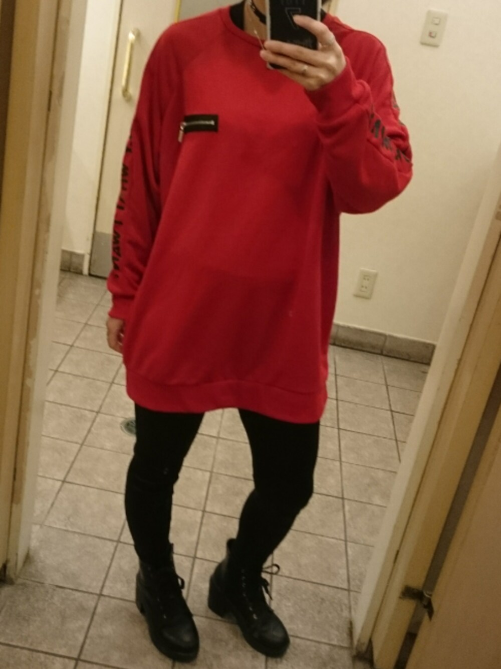 赤い服ばっかり買ってしまう( ̄−ω− ̄) でかパーカーにフェイクレザーの レギパンを合わせるのが好き!