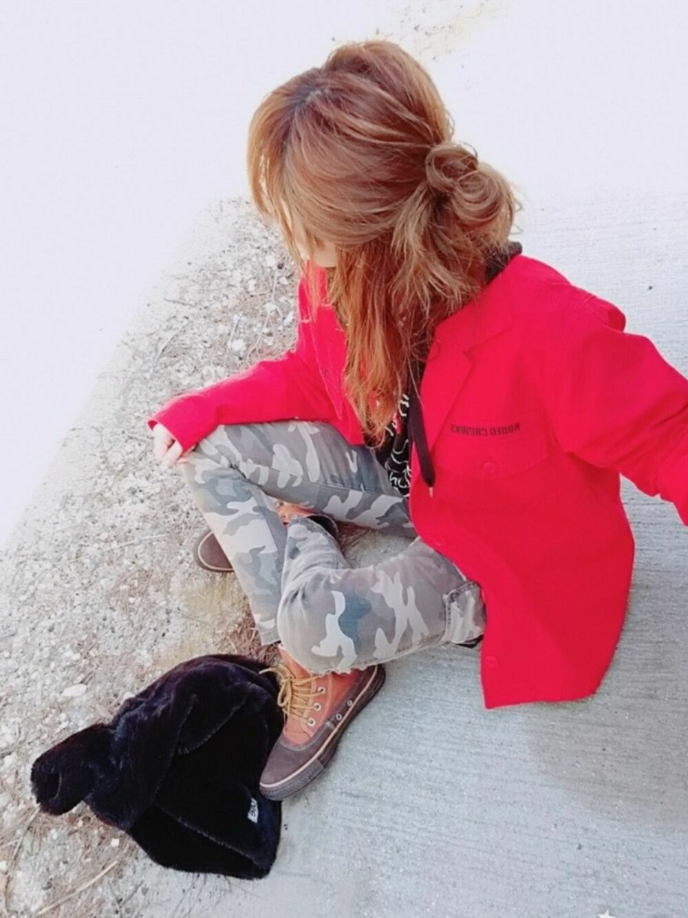 ご覧頂きありがとうございます♥ ロデオのミリタリージャケットが着たくて考えたコーデ🙋 はい、今日はメンズライクな感じです😳 赤×カモフラ派手かなーと思ったけど、パーカーとバッグを黒にしたので何とかまとまったかな🤔? 最近楽やし簡単やし、ハーフアップお団子にハマりまくり♥(笑) この前、ドラマみて向井理がケロっピに見えるってゆーこと誰にも理解してもらえんのやけど、誰か同じ人おらんかな?(笑) いつもありがとうございます♥