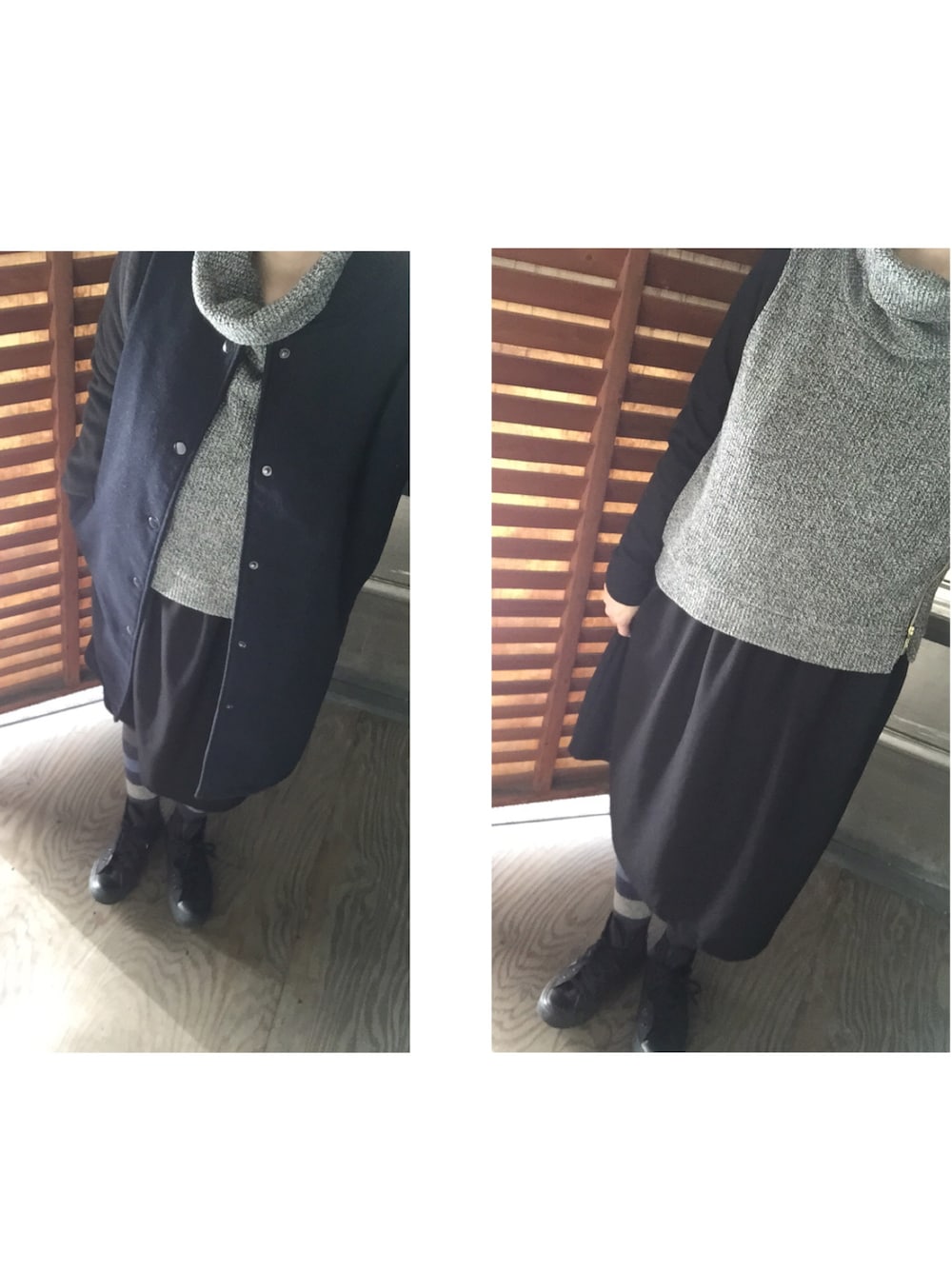 今日はいかにもマタニティな感じに……。 お腹がだいぶ目立ってきて 毎日、胃が圧迫されて苦しいです。