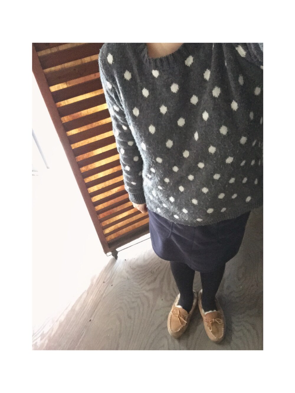 今日はさむーい。 厚手ニット×裏起毛スカートに裏起毛タイツ ボアモカシンと保温効果なものばかりを 選んどったみたい。 アウターはこれまたボア付きの ミリタリーコートでしたとさ。 明日も冷え込むみたいやから またぬくぬくせねば。