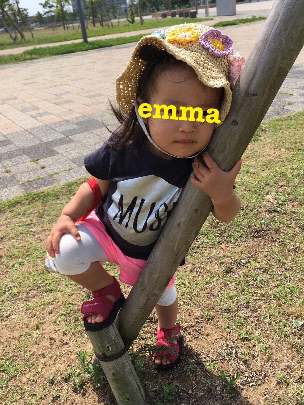 今日のテーマはエアロビしちゃうよースタイル☆ 公園に行って、すべり台をスルーっと滑るために、短パンの下にスパッツを履かせたけど、滑り台滑らないで暑さに負けて、日陰に避難(*_*) 水で遊んでたら、スパッツ濡れて、結局帰りは脱がせて帰って来たー意味なかったねー。。。