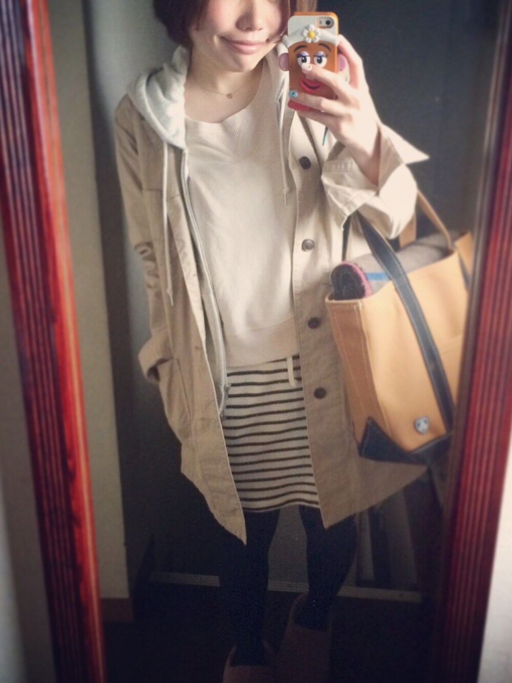 サッカー見に行くー♡ トップス H&M スカート そのへん アウターGU スニーカー NB カバン オーシバル