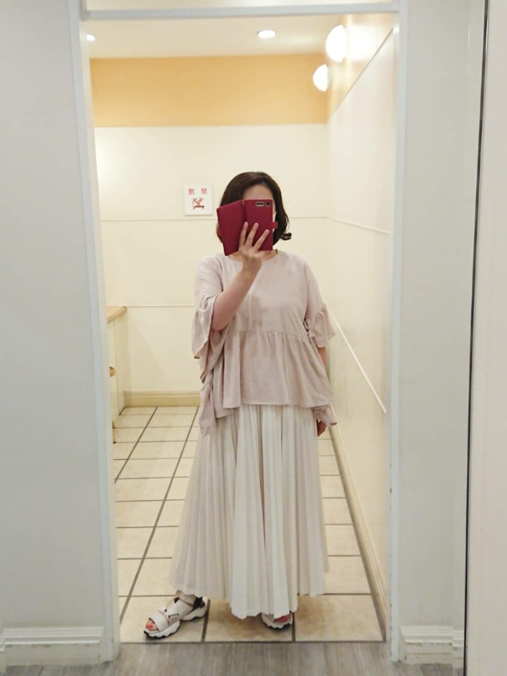 柔らかい生地のトップスと プリーツスカートで いちごミルクコーデ🍓🍼💭💕