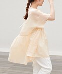 ラミーリネンのチュニックブラウス✨ 色がとてもかわいい❤ 透け感もかわいいので 中にはバックプリントのタンクを着てます😊 パンツは昔の水玉刺繍のパンツです😊