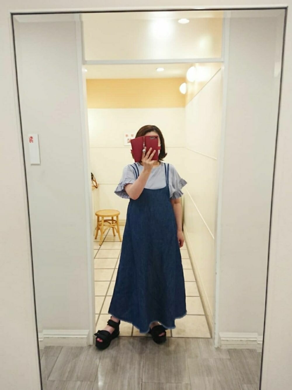 リネン混のデニムのキャミワンピと 撥水加工・UV加工と機能性バツグンのTシャツ 汗かきの私には着心地も機能性も💮💯のコーデです✨