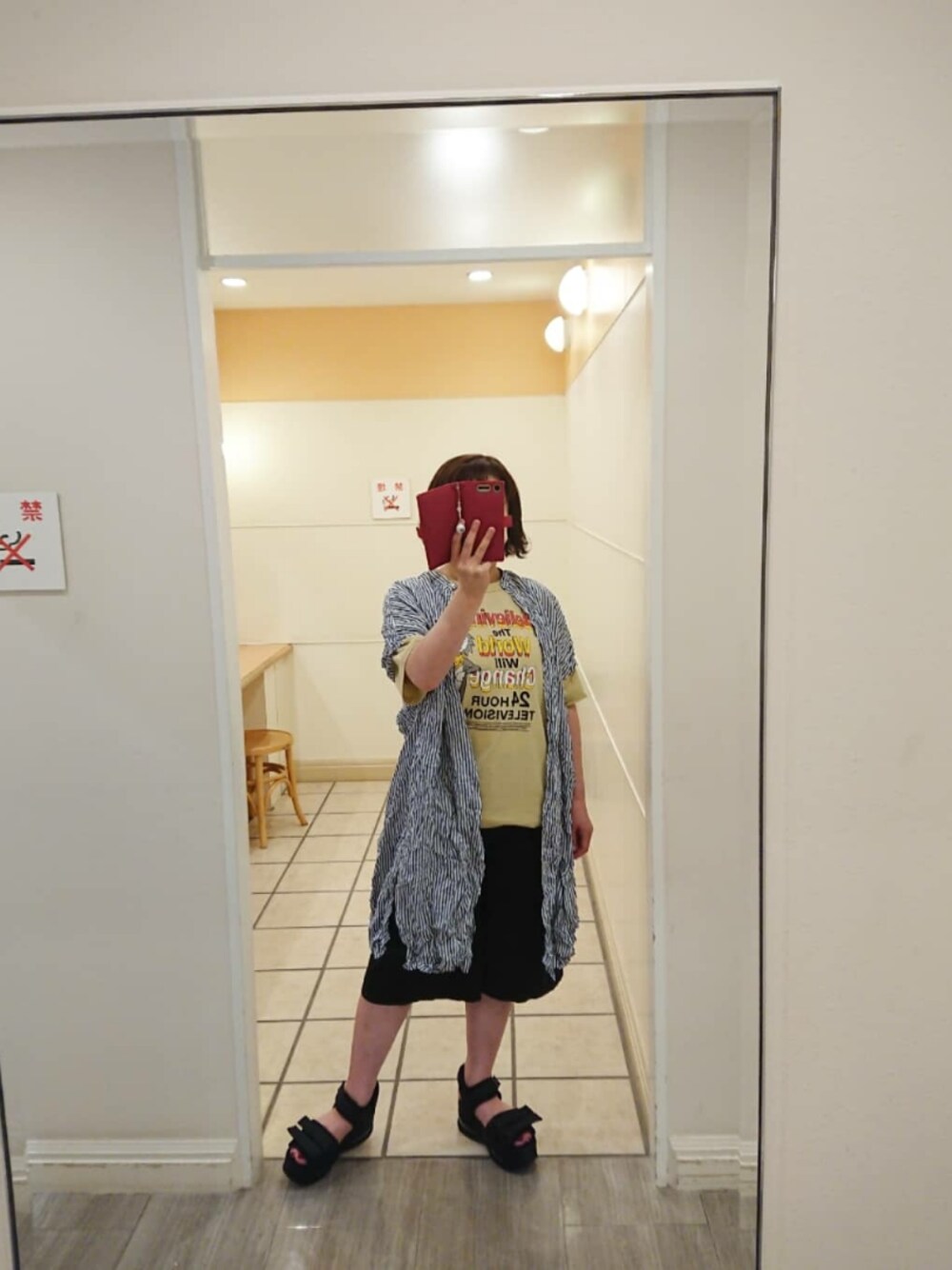 24時間テレビのチャリティーTシャツ おもウルフのキャラクターがかわいい💛 冷感ストライプシャツワンピは サラッとしてて軽くてワッシャー加工してあります✨ 今回のワッシャー加工は洗濯してもキープされてた✨ ハーフパンツは暑い夏オススメ✨ 暑がりさんにはオススメ✨
