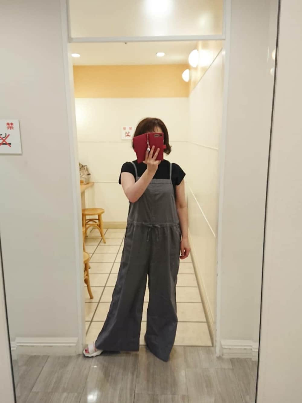 フレンチスリーブのTシャツに サロペ