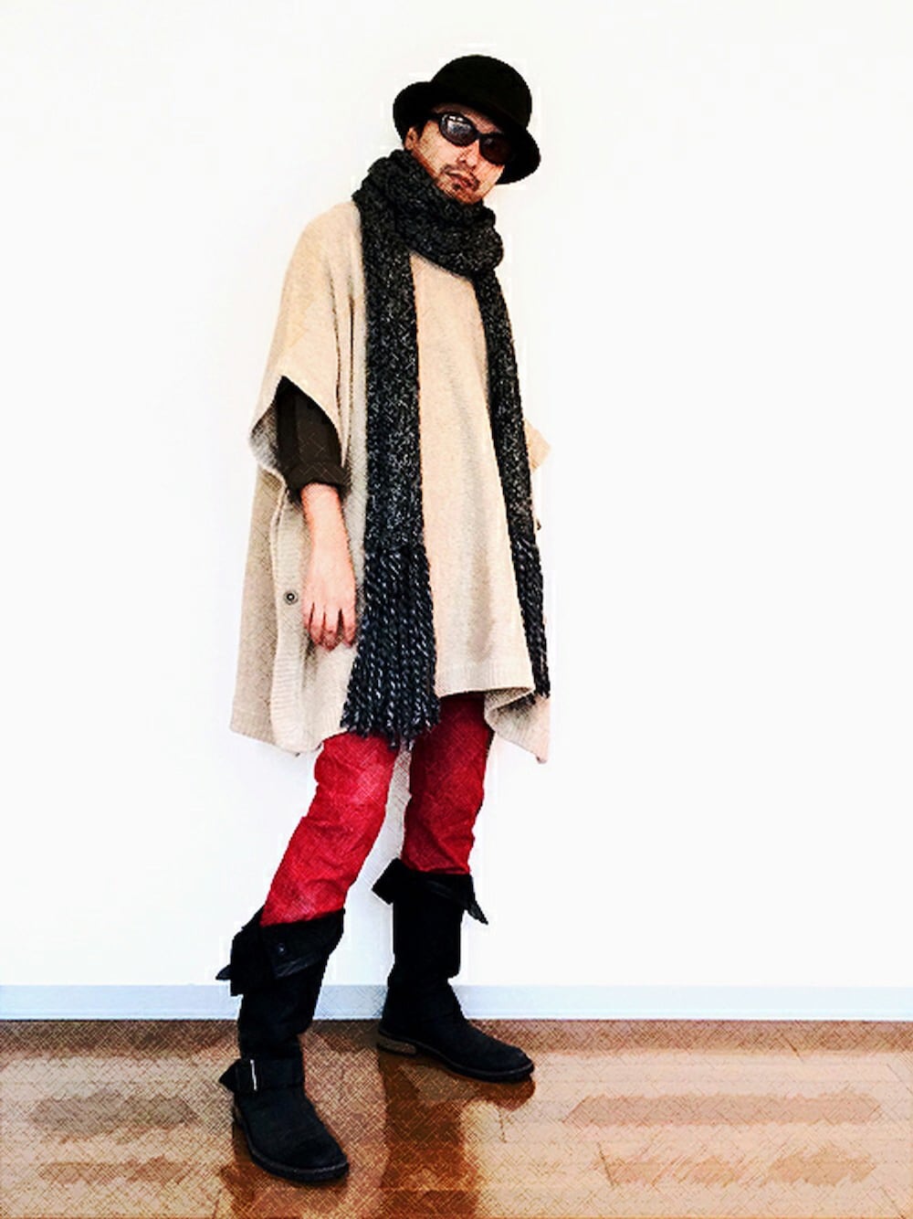 ビッグシルエットのニットポンチョとロングマフラーはスウェーデンのインポートブランドtwist&tangoから。