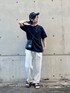 【夏のモノトーンコーデ】 この夏オススメのモノトーンシンプルコーデです。ブラックとホワイトのコントラストが引き締まった印象を与えつつ、カジュアルなアイテムでリラックス感も兼ね備えています。黒の小物が統一感を持たせ、シックな仕上がりとなっています。 - **トップス**: ブラックのTシャツは、シアサッカー素材で肌荒れが良く、シンプルながらもスタイリッシュなアイテムです。カジュアルな雰囲気を保ちつつ、全体を引き締める役割を果たしています。 - **パンツ**: 白のパンツは、綿麻素材で薄すぎず、厚すぎない。クリーンで爽やかな印象を与えます。リラックスフィットでありながら、シルエットが綺麗なのでスタイリッシュに見えます。 - **キャップ**: ブラックのキャップが、全体のバランスを取りながら、カジュアルな要素を強調しています。 - **バッグ**: コンパクトなサコッシュバッグは、シンプルなデザインでありながら実用的です。黒色で統一感を持たせつつ、コーディネートにアクセントを加えています。 - **サンダル**: ブラックのサンダルは、足元を引き締め、全体のバランスを整えます。快適さとスタイリッシュさを兼ね備えており、夏らしい軽やかさも感じられます。