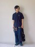 チェックシャツを腰巻きで効かせたレイヤードコーデ。ポロシャツのきれいめ感に、遊び心あるアクセントをプラス。統一感のあるトーンで全体に落ち着いた印象に仕上げました。