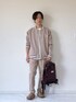 クラシックトーンでまとめた秋口スタイル ベージュのスタジャンをベースに、ボーダーTシャツをインナーに合わせた軽快なレイヤードスタイル。ボトムは同系色のスリムパンツで縦のラインを意識し、全体をスマートに仕上げています。足元はブラウンのシューズで統一感をプラスしつつ、新色のブラウンのリュックが差し色となり大人カジュアルを演出。街歩きからお出かけシーンまで幅広く活躍する、程よいカジュアルさときちんと感を兼ね備えたコーデ