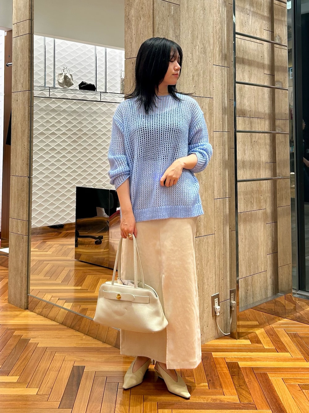 外はまだ暑いですが、どうしてもニットが気になってしまいます… 爽やかなブルーにさりげなくスパンコールが散りばめられていて、シンプルですが華やかな印象に◎ 寒くなってからはシャツとレイヤードしてみるのもオススメです! --------------------------------------- ・普段の着用サイズ:38 ・シューズサイズ:24.0〜24.5/38/L ・パーソナルカラー:ブルベ wear:@yor0shiosca ---------------------------------------- ◆アーバンリサーチのオンラインストアから 店舗へのお取り置き・お取り寄せが可能な便利なサービスもございます。 商品ページ内 店舗取置/店舗通販の"申し込む▶︎"ボタンからお申し込みいただけます。 ◆店舗通販も承っております 店舗へお電話、LINEにてお気軽にお問い合わせくださいませ。 LINEお友達追加はこちら⇒ ID: @851kehqc ROSSOグランフロント大阪店 TEL: 050-2017-9120