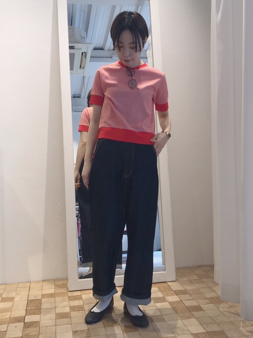 個人的に一押しのトップス💁♀️ フライスバイカラーTは色違いで欲しくなります… コンパクトなシルエットで小柄な型にも🙆♀️
