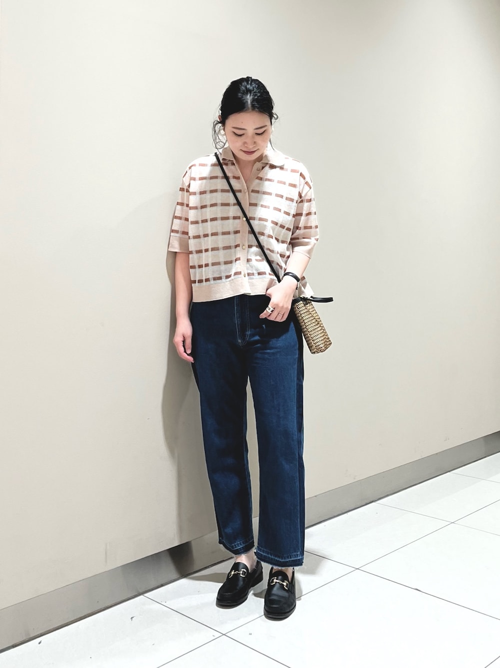 GWのお出かけに★ シルエットのキレイなデニムにデザイン性のあるトップス合わせでシンプルでもオシャレな印象に☺︎