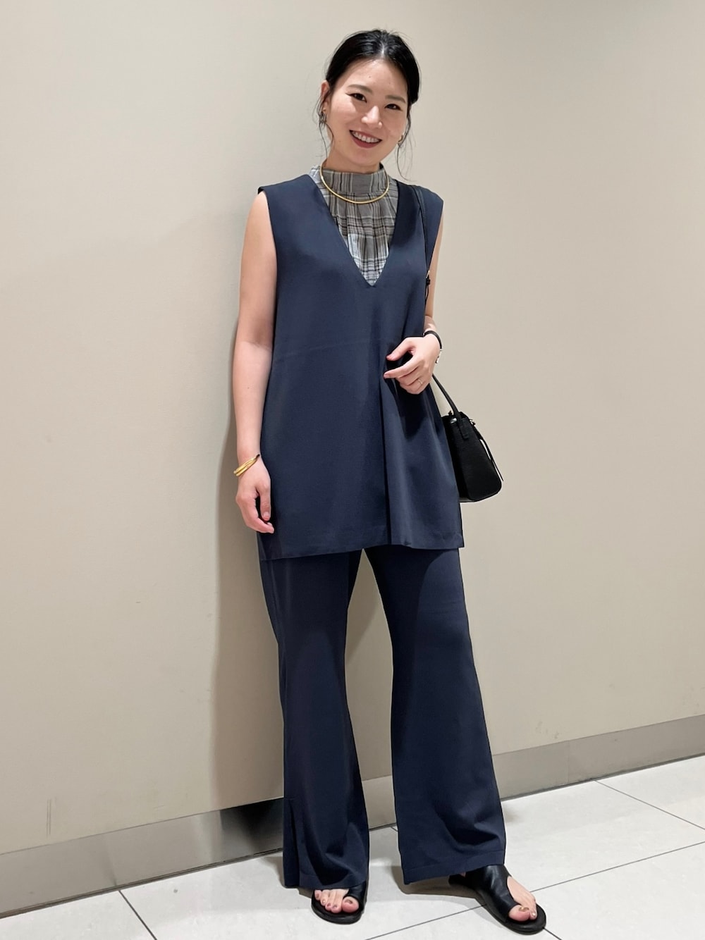 SAYA(カリテ スケープ ららぽーと豊洲店)のベスト「《セットアップ対応》レーヨンストレッチ2WAYニットジレ」を使ったコーディネート